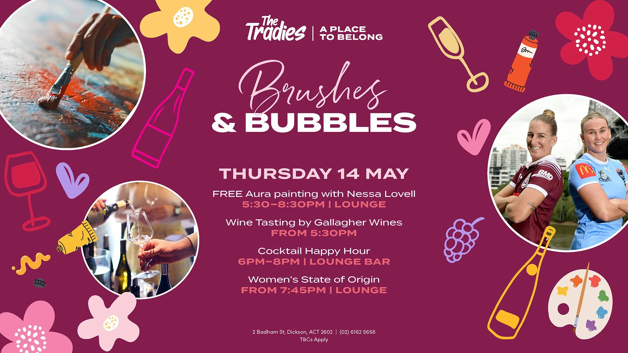 Pair it with Cocktail Happy Hour and settle in as the evening rolls into the Women’s State of Origin live on the mega screen. A relaxed, feel-good night that blends creativity, conversation and a little excitement. *Members only